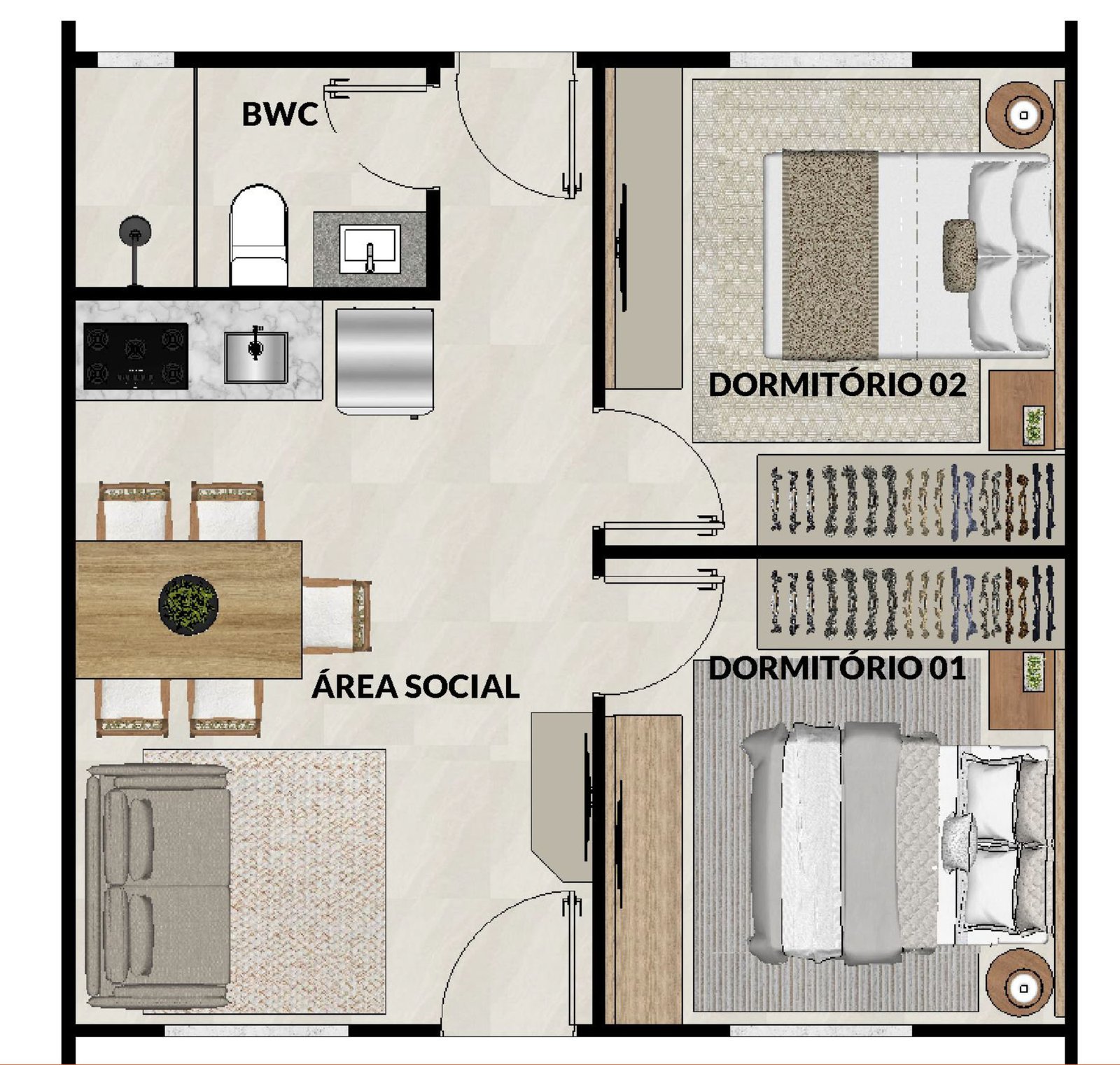 • Layout otimizado para ventilação cruzada e iluminação natural